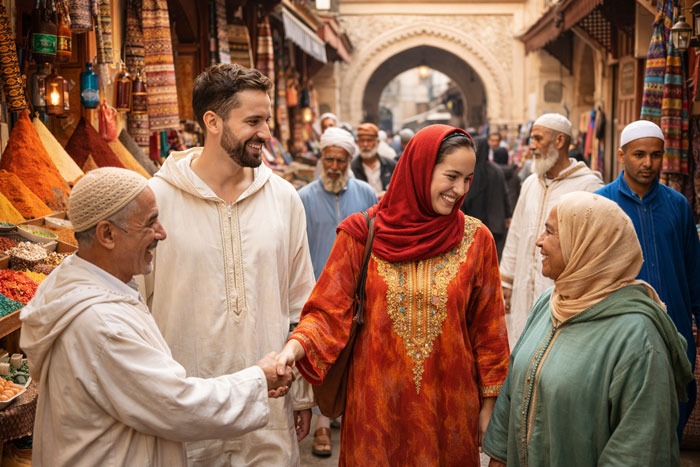 Living like a Moroccan isn’t just about clothing or food; it’s about how you interact with people. Understanding Moroccan social norms will help you connect with locals naturally and avoid misunderstandings.